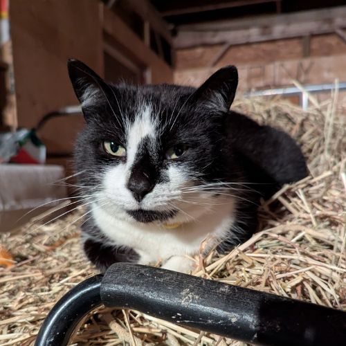 | Short Description of your Pet. | Black and white full face friendly with yellow collar |