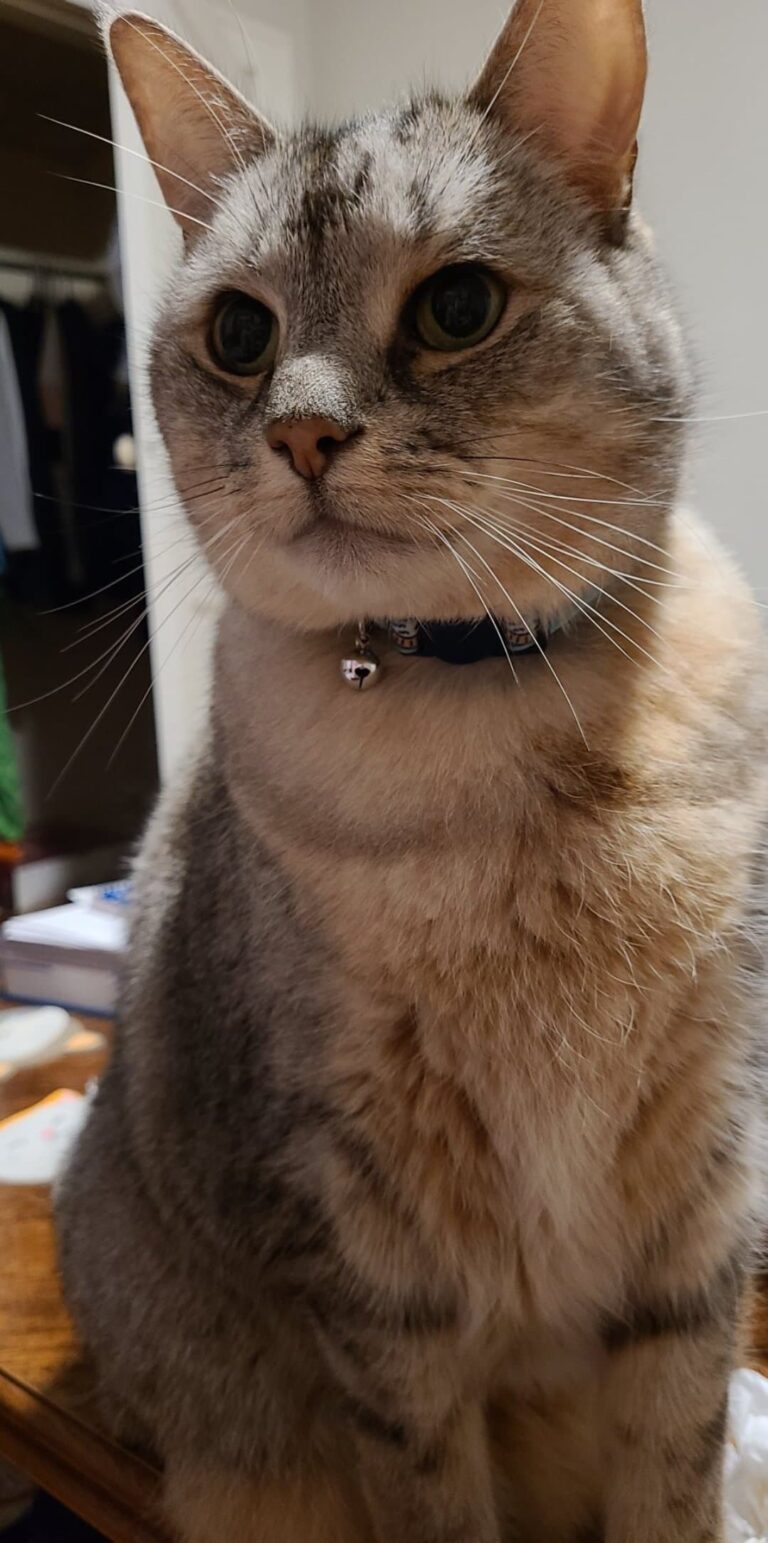 Short Description of your Pet:Grey tabby,green eyes , has small bump on head near eyebrow that you can feel has had it since birth. Very fluffy